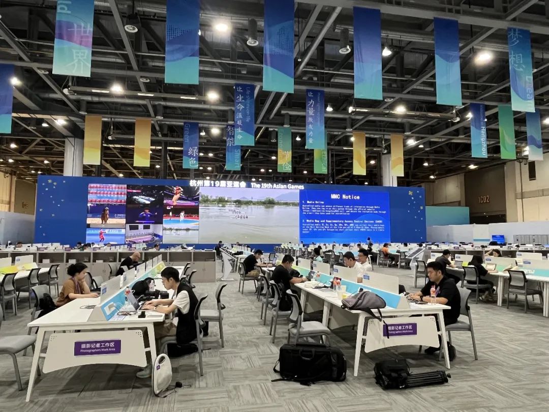 处于杭州亚运会竞赛场馆群内的MMC,紧邻杭州奥体中心体育场、奥体中心游泳馆、奥体中心网球中心、奥体中心综合训练馆。MMC共有ABCD四个展厅和序厅、负一层餐厅及部分区域,总面积近5万平方米。亚运会期间,将为来自全亚洲的媒体记者们提供24小时服务。